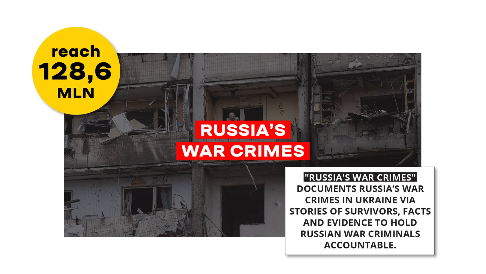 To tell the world about the war crimes committed by Russian soldiers and Russian military leadership on the territory of Ukraine since the beginning of the full-scale invasion, as well as about their consequences.