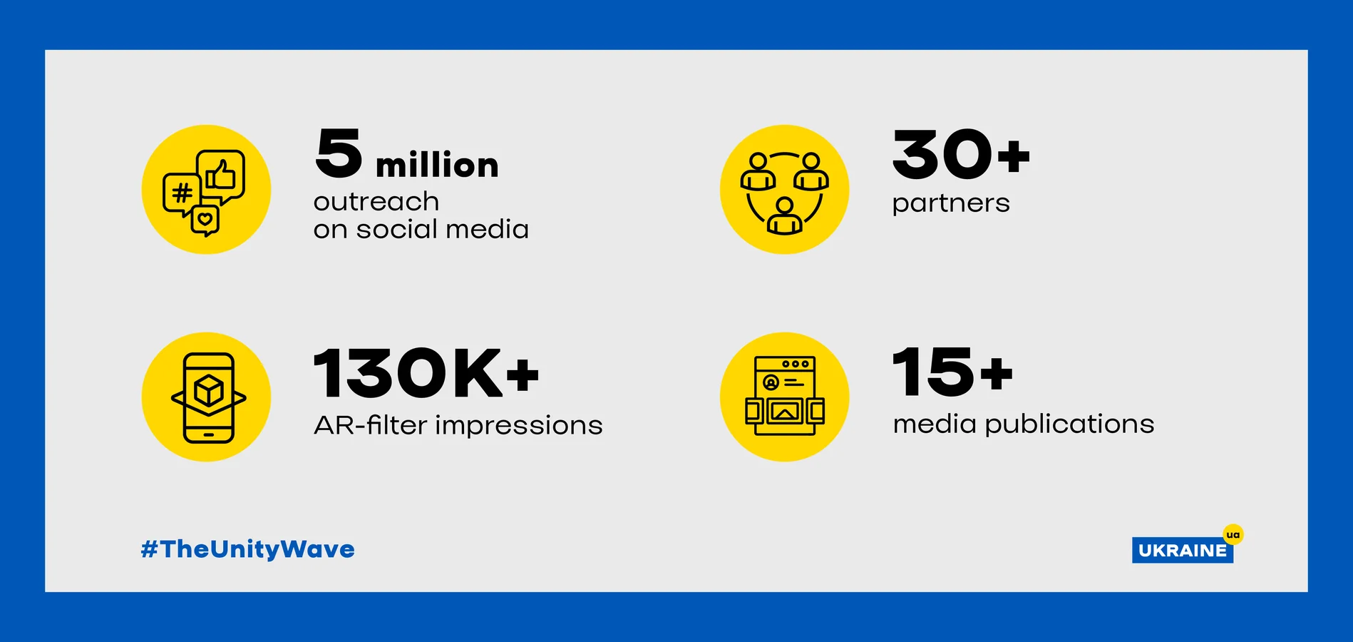 #TheUnityWave started with a joint publication by @ukraine.ua and @lovegreatbritain (the official Instagram profiles of the respective countries). This wave became a special and symbolic moment of the campaign, as its format opened the opportunity for partners from Ukraine and the UK to share a common message and emphasize the importance of solidarity before the Eurovision final.