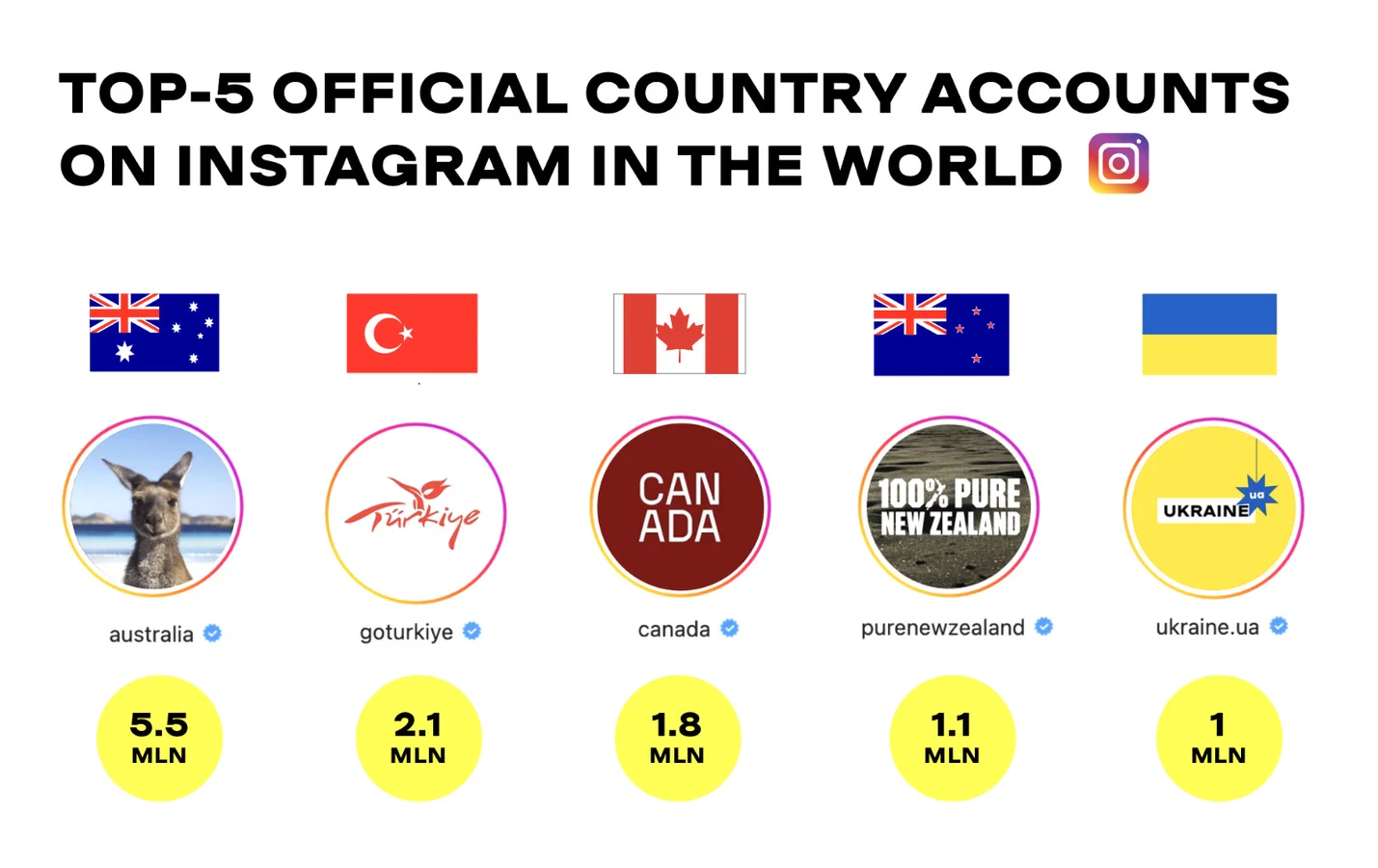In 2022, the outreach of Ukraine.ua communication channels exceeded 1 billion, and the regular audience grew more than 10 times over the year to 2 million users. The Instagram page of Ukraine @ukraine.ua hit the 1 million subscribers and got to the top 5 most popular official pages in the world.