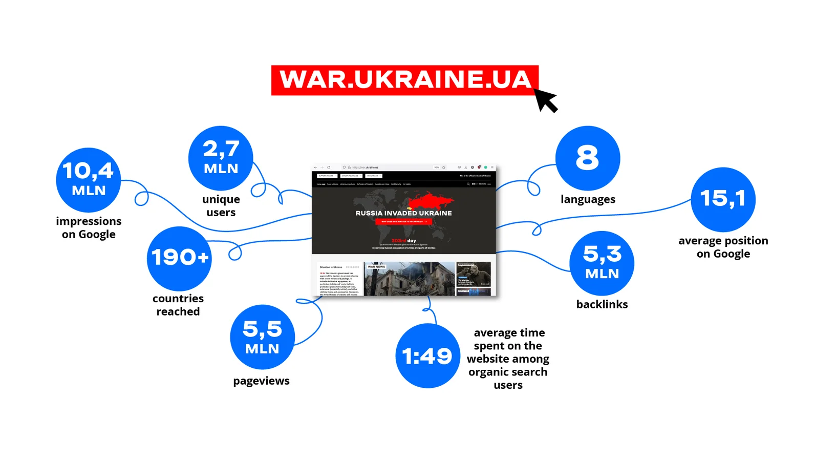 On February 24, 2022, the day the full-scale war began, the demand for information about Ukraine online reached record levels. According to Ahrefs analytics, in February, “Ukraine” was searched about 32 million times worldwide. In addition, many queries and questions related to Ukraine and the course of the war became trending in search engines. The creation of war.ukraine.ua as a source of verified information for foreigners was an opportunity to offer answers to questions that interested millions of people.