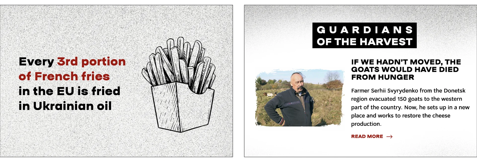 - живі історії українських фермерів та інших учасників агровиробництва та логістики в Україні (історії доступні на сайті в розділі «Вартові врожаю»),