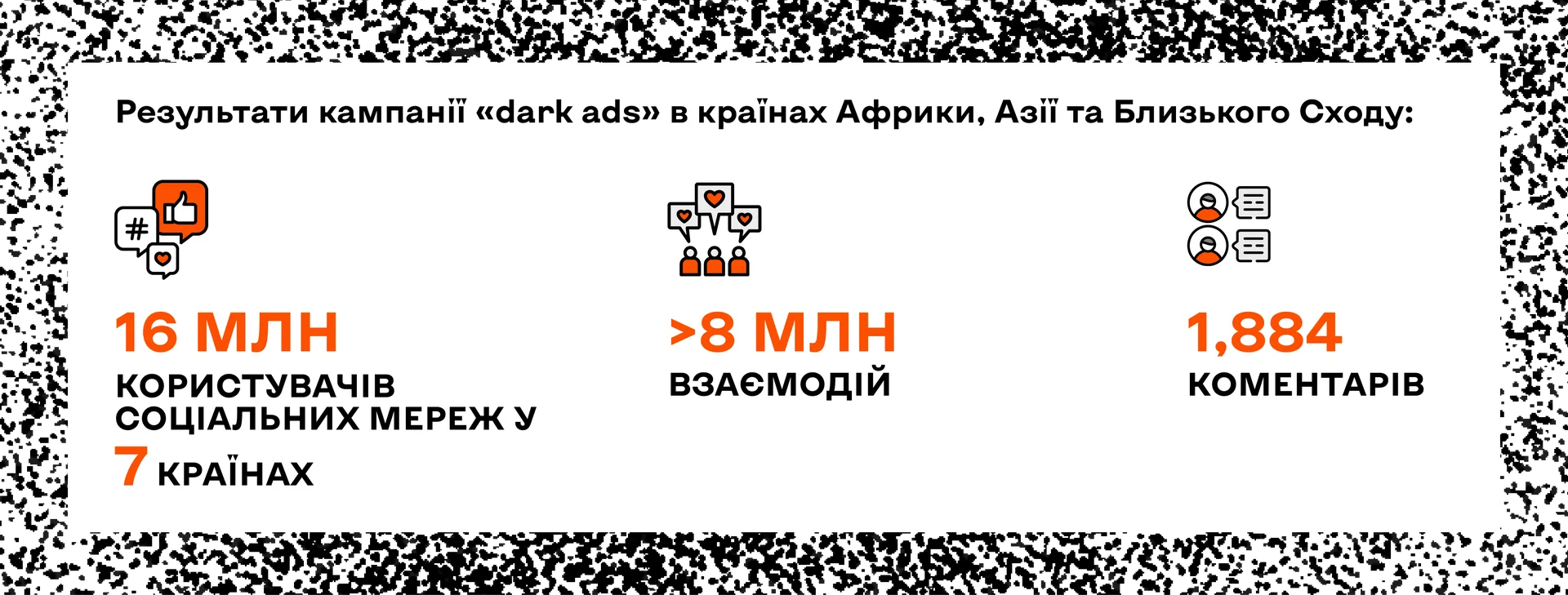 Загалом кампанія на цифрових платформах охопила понад 16 млн користувачів соцмереж у семи країнах, а також досягла залученості на рівні 8 млн контактів. Найціннішим форматом взаємодії з контентом стало близько 2 тис. коментарів, які користувачі залишили до запропонованого в рамках кампанії цифрового контенту.
