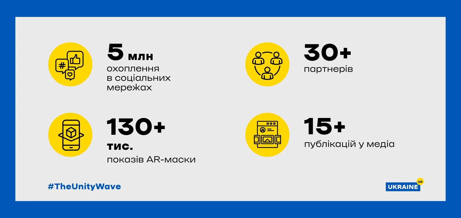 До старту #TheUnityWave ключова аудиторія флешмобу — українці та британці — вже активно демонструвала свою підтримку (через поєднані українсько-британські прапори, синьо-жовті підсвітки відомих будівель у Ліверпулі тощо), тоді як флешмоб дозволив показати єдність і в цифровому вимірі — за допомогою спільних публікацій в Instagram та сторіз з використанням AR-маски, сповненої українсько-британських сердець.